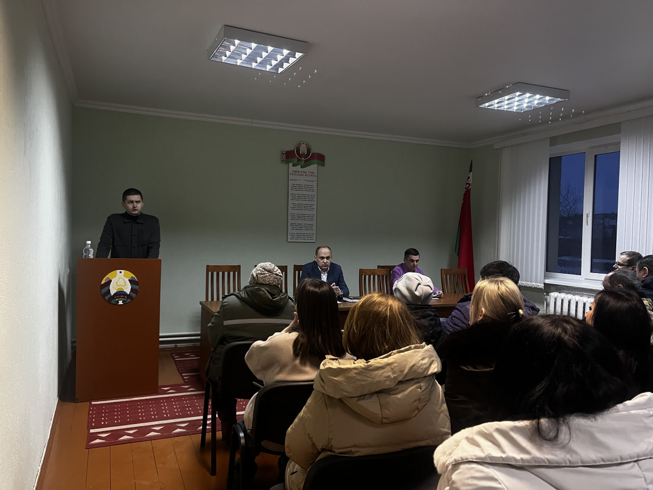 1 тема, рекомендованная Администацией Президента Республики Беларусь: Оборонительная мощь белорусской армии и патриотизм в современных условиях. Докладчик информировал о мощностях и передовых позициях нашей белорусской армии, призвал к патриотизму и напомнил об ответственности каждого за наше надежное и счастливое настоящее и будущее.