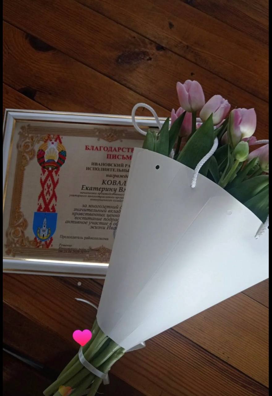 Начальник ПТО Ивановского ЖКХ Екатерина Ковальчук в рамках проведения регионального фестиваля «КветкI жыцця-2026», приуроченного к Году белорусской женщины, награждена Благодарственным письмом Ивановского райисполкома за значительный вклад в укрепление духовно-нравственных ценностей, патриотическое воспитание подрастающего поколения и активное участие в общественно-политической жизни Ивановского района.